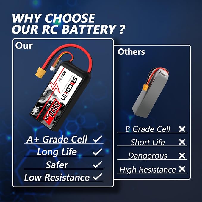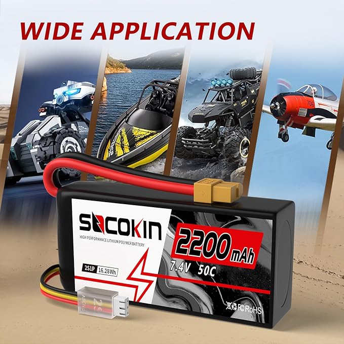 About This 【Details】Battery voltage: 7.4V; Cell voltage: 3.2~4.2V; Capacity: 2200mAh; Discharge:50C; Connector:XT60 ; Material: Lithium polymer. 2S lipo battery is... Read more