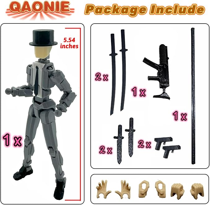 3D Printed 5.54-inch Multi-Jointed Action Figures Dummy13, Full Body Mechanical Movable Toy, Multiple Accessories, Hand Painted Figure, Desk Decoration, Creative Gifts (Y-Gray Gentleman)