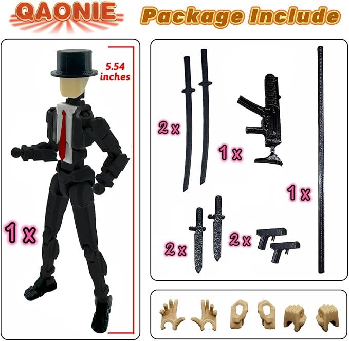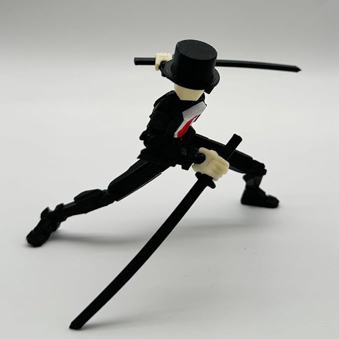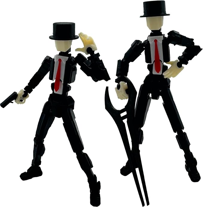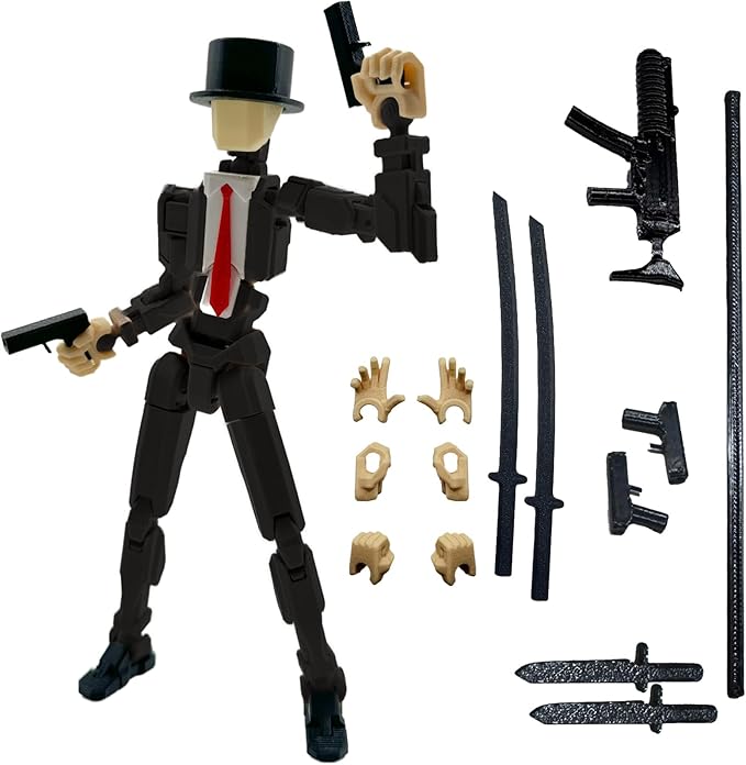 3D Printed 5.54-inch Multi-Jointed Action Figures Dummy13, Full Body Mechanical Movable Toy, Multiple Accessories, Hand Painted Figure, Desk Decoration, Creative Gifts (Y-Black Gentleman)