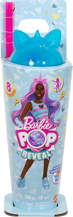 Barbie Pop Reveal Series Doll & Accessories Set, Shakes Series, Scented Unicorn Fashion Doll & Pet, 8 Surprises Include Color Change
