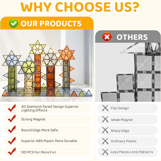 About This Safe Magnetic Tile Set: 2024 upgraded brown magnetic tiles are crafted from high-quality ABS plastic with a rounded... Read more