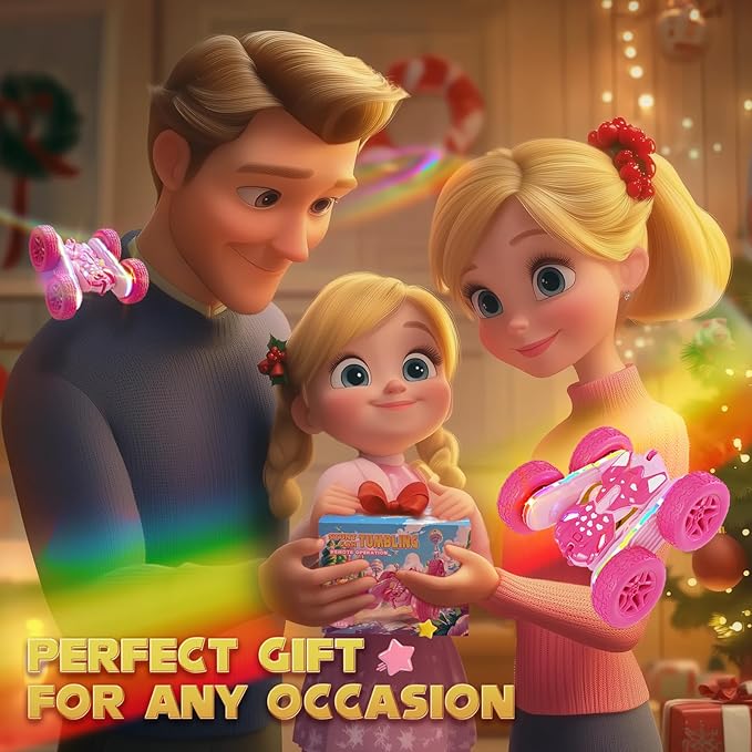 Remote Control Car for Girls, Pink RC Cars Stunt RC Car Girl Toys for Girls Double-Sided 360° Rotating with Headlights 4WD Kid Toys for Birthday Gifts (Pink)