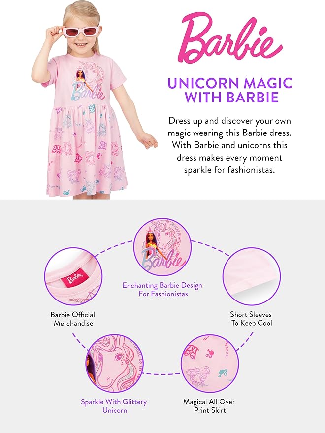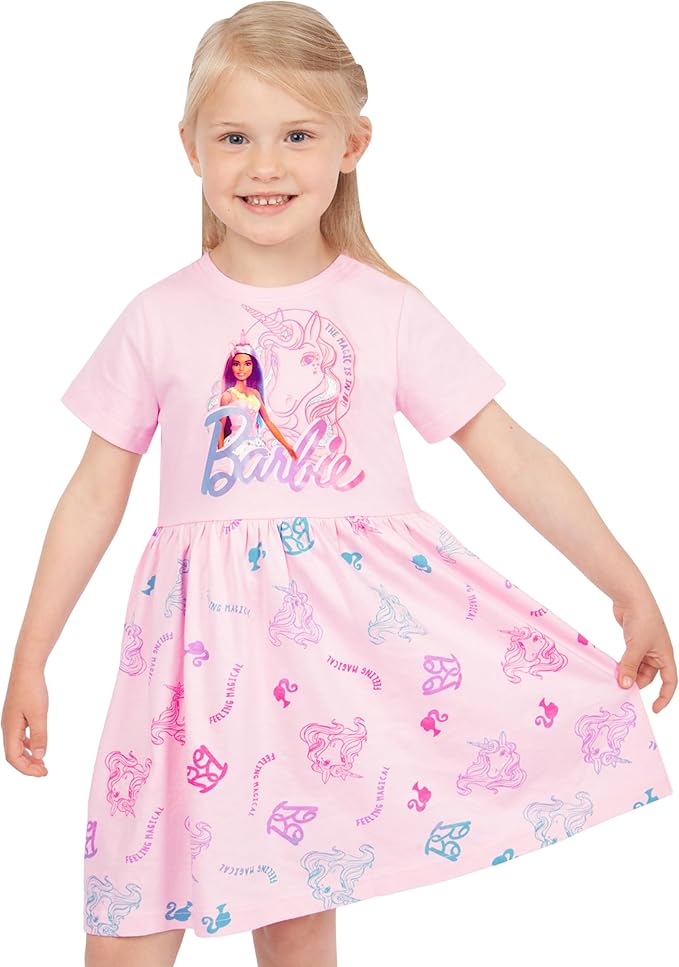 Barbie Dress | Short Sleeve Girls Unicorn Dress | Skater Dress for Girls