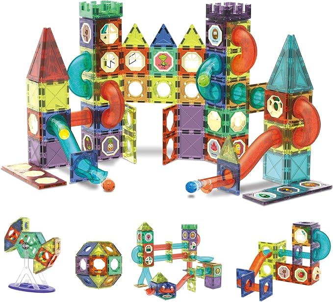 Contixo STEM Building Toys - 110 pcs Marble 3D Magnetic Run Tiles Learning Stacking Educational Building Blocks Set, Creativity Beyond Imagination, Inspirational, Recreational Toy for Kids