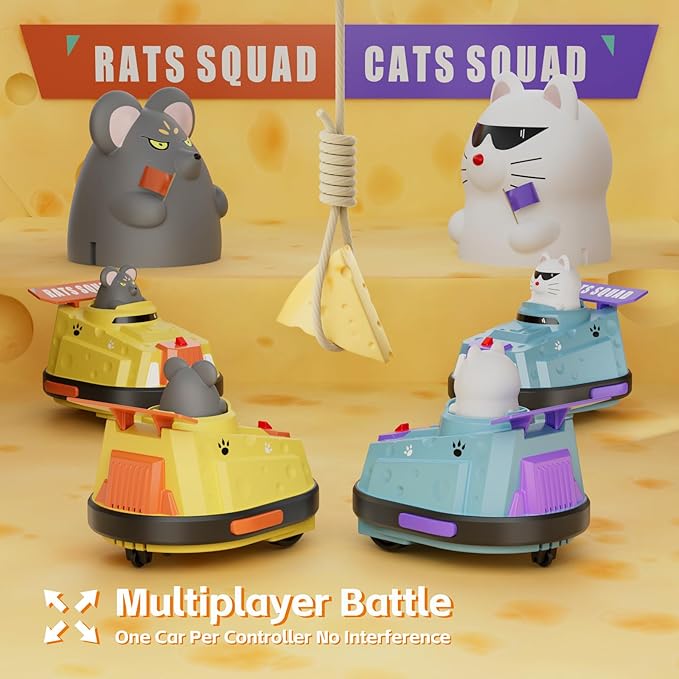 2 Pack Remote Control Car, RC Ejecting Bumper Car for Kids, Cat and Rat War Cheese Bumper Car, Car Toys for Ages 5-7, Christmas Birthday Gifts Toys for 3 4 5 6+ Year Old Boys Girls