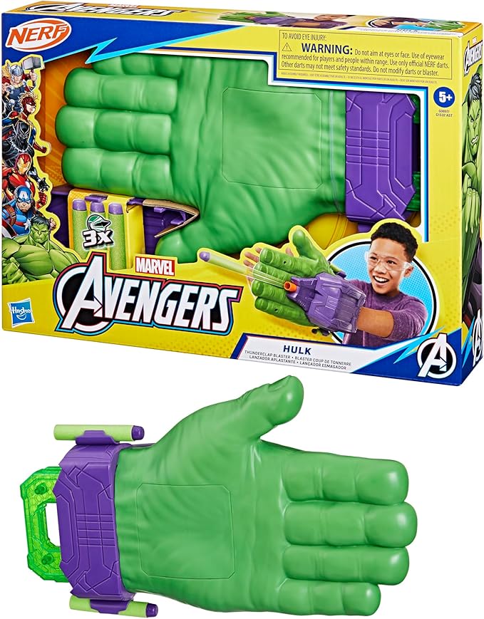 Marvel Avengers Hulk Thunderclap Blaster Roleplay Toy with 3 NERF Darts, Super Hero Toys for Kids Ages 5+