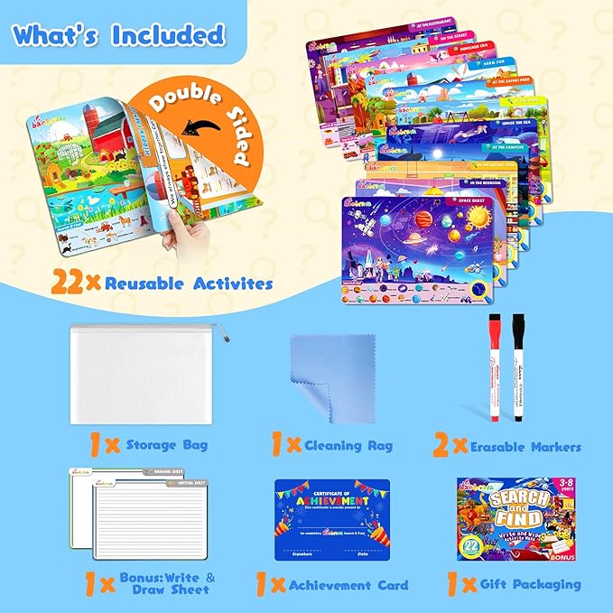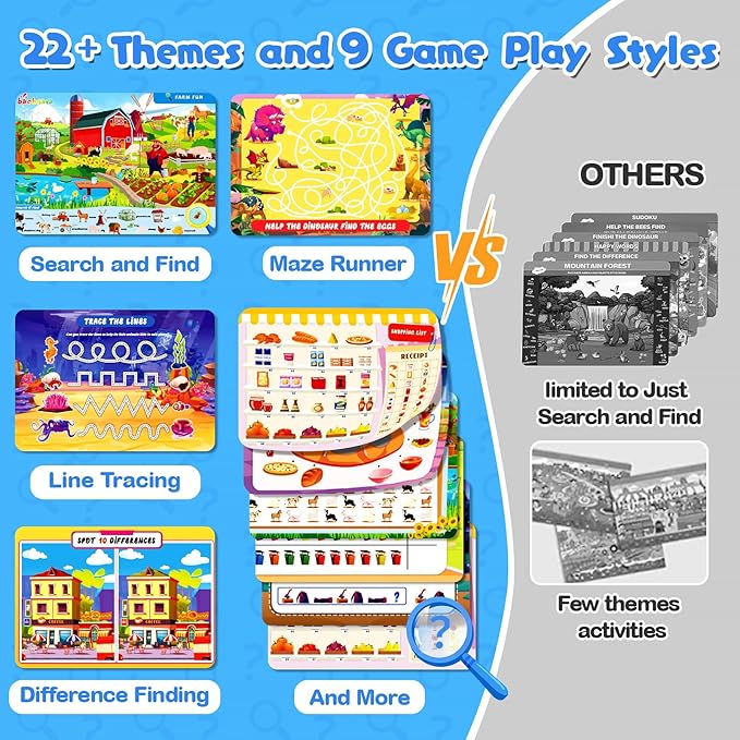 Baobrava Search and Find Game Books - Preschool Learning Activities for Kids Age 3-8, Travel Games for or Road Trip Car Airplane, Educational Seek Activity Birthday Gifts for Boys and Girls