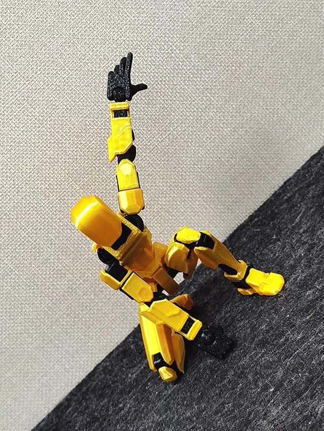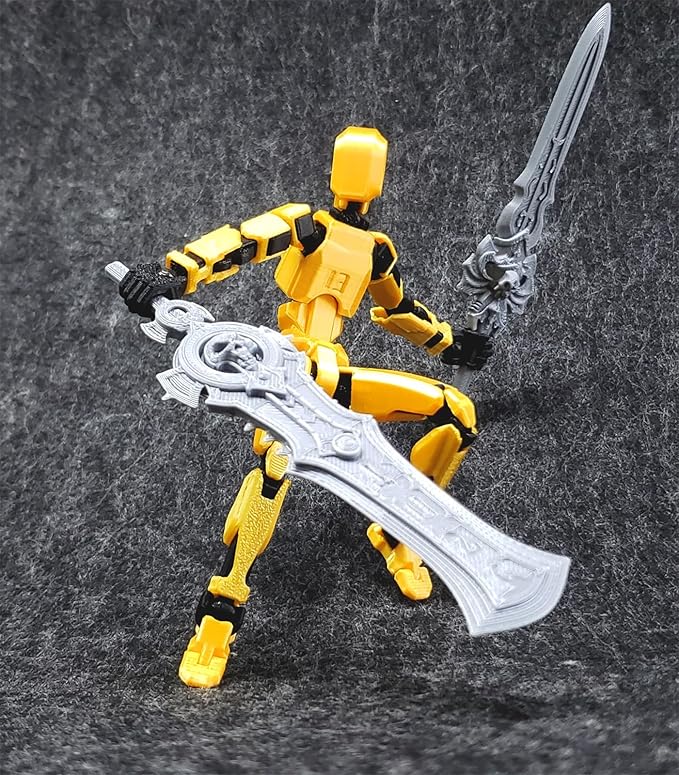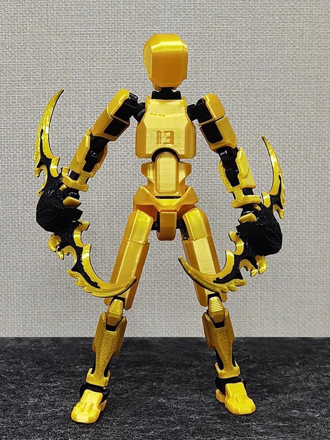 (Assembly Completed) T13 Action Figure, 5.5 Inch 3D Printed Multi-Jointed Movable Dummy 13 Toy,Dummy 13 Robot Action Figure with Lots of Weapons, Gold