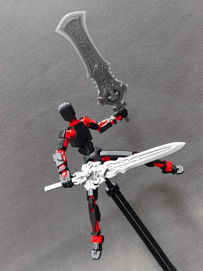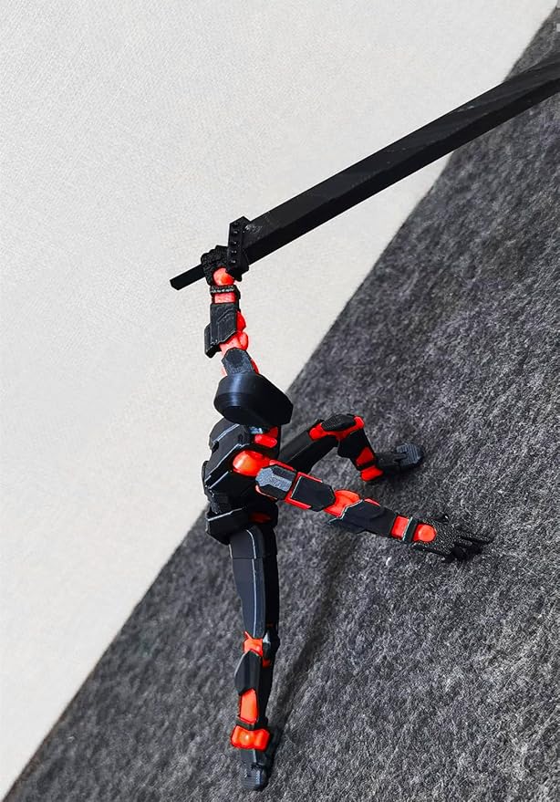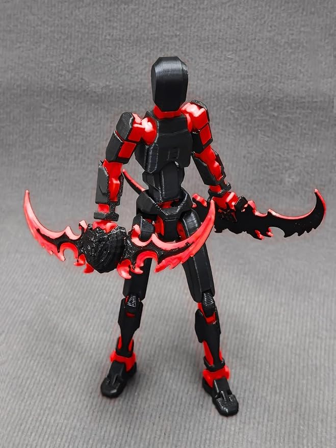 (Assembly Completed) T13 Action Figure, 5.5 Inch 3D Printed Multi-Jointed Movable Dummy 13 Toy,Dummy 13 Robot Action Figure with Lots of Weapons, Black Red