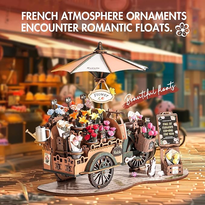 Rolife 3D Wooden Puzzles for Adults, Model Building Kit Flower Cart to Build, Fun Construction Projects Brain Teaser, Arts Crafts Collectible Handcraft Desk Decor Chirstmas Gifts for Family Teens