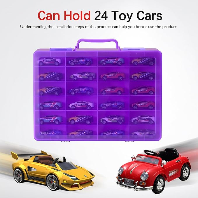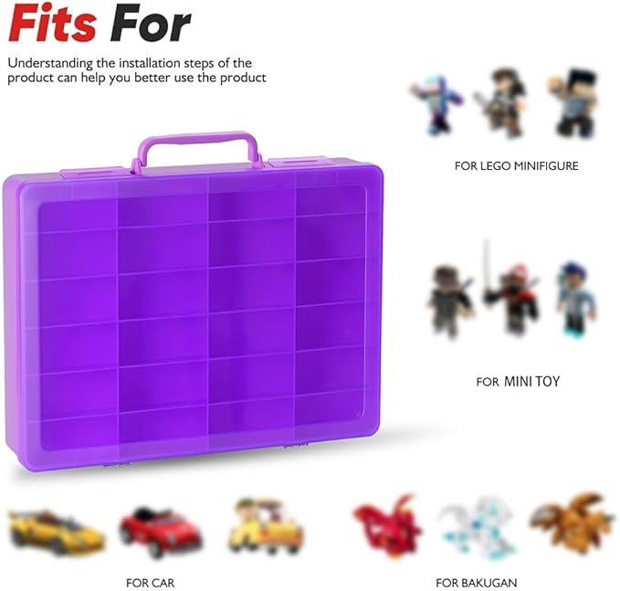 Toy Storage Organizer Case for Hot Wheels Car, for Matchbox Cars, for Mini Toys, for Small Dolls. Carrying Box Container Carrier with 24 Compartments (Box Only) (Purple)