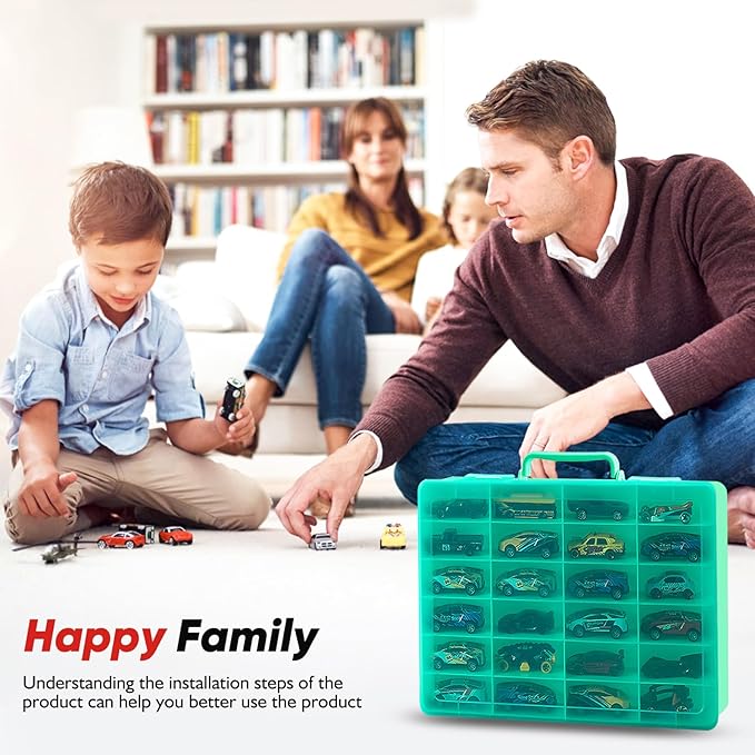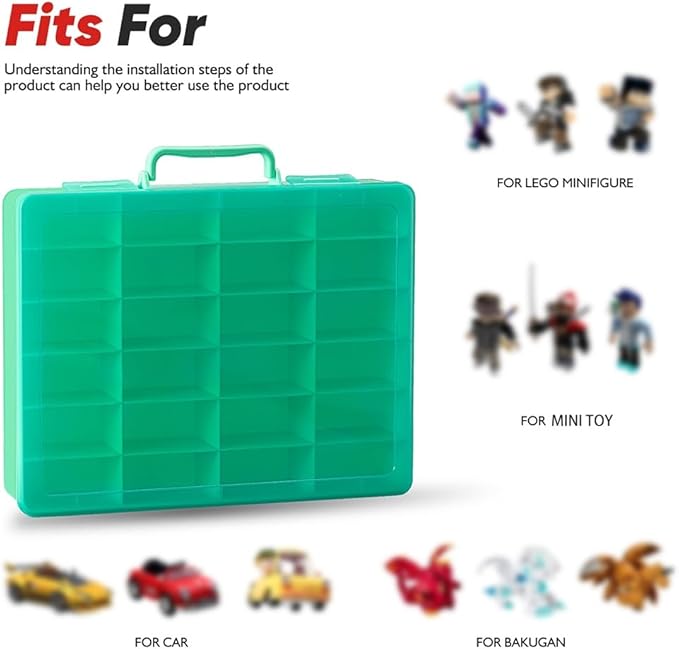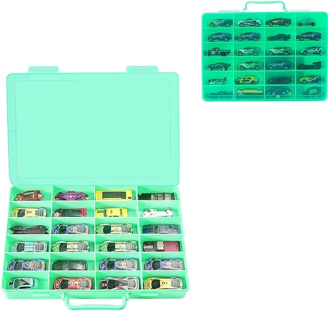 Toy Storage Organizer Case for Hot Wheels Car, for Matchbox Cars, for Mini Toys, for Small Dolls. Carrying Box Container Carrier with 24 Compartments (Box Only) (Green)