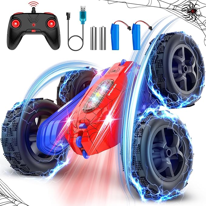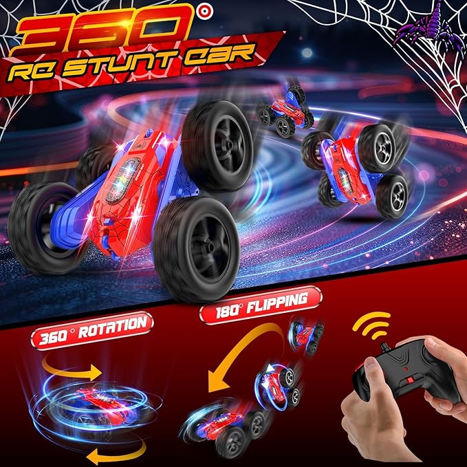Remote Control Car, Double-Sided 360 ° Flipping Rotating RC Car, RC Stunt Car with Colorful LED Lights, 4WD RC Toy Car for Boys Age 8-12 and Boys Girls Birthday Present