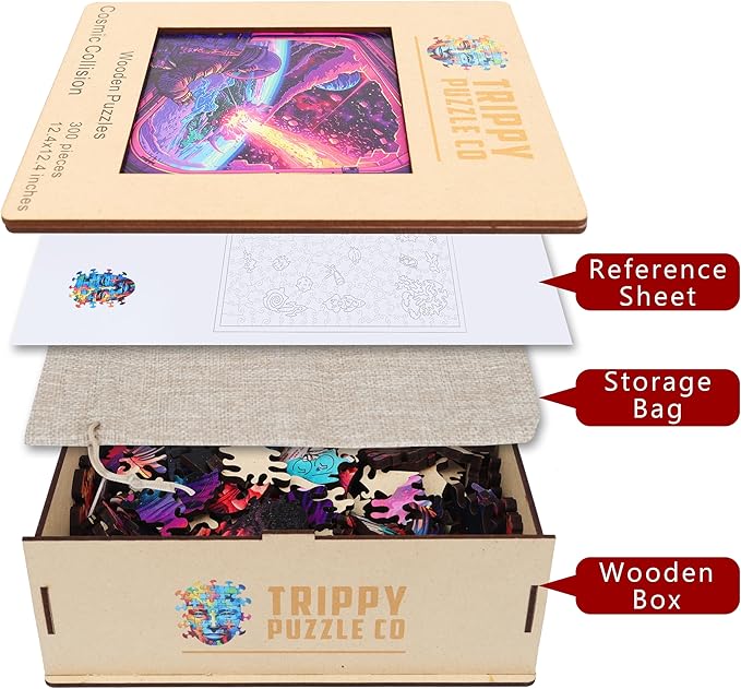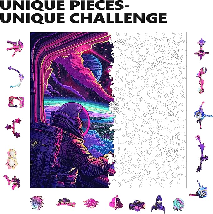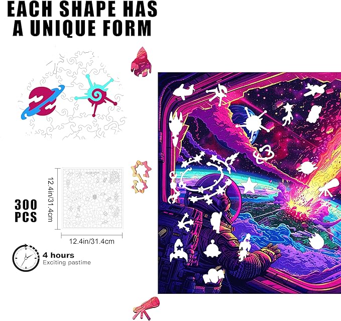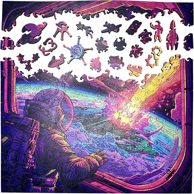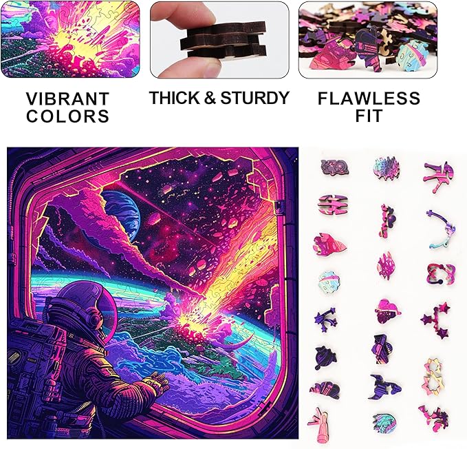 Wooden Jigsaw Puzzle for Adults - Challenging 300 Piece Puzzle with Cool Shapes - Space Astronaut Meteor Puzzle Art - Paranormal Collection (Cosmic Collision)