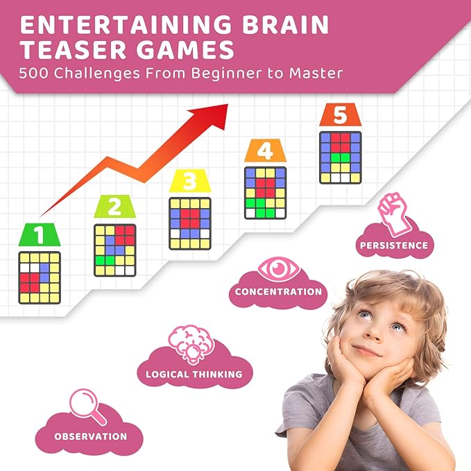 HOMESTEC Logical Super Slide Puzzle, Hand Held Travel Games for Kids and Adults, Brain Teaser Toys Road Trip Activities for Boys and Girls, Birthday Easter Basket Stuffers (Pink)