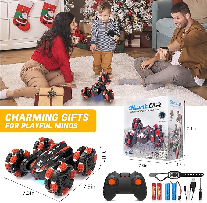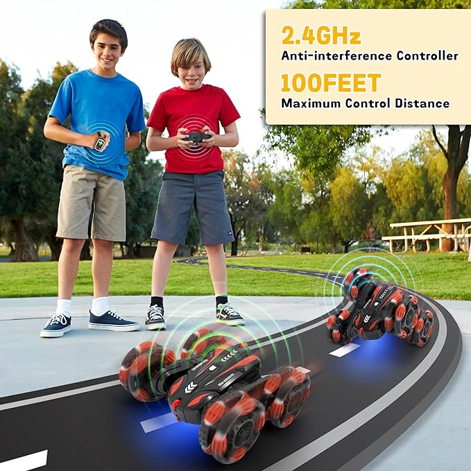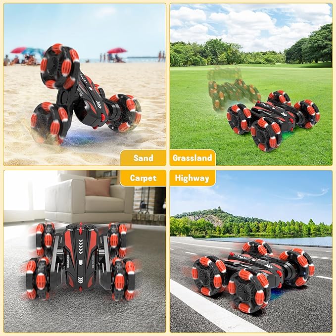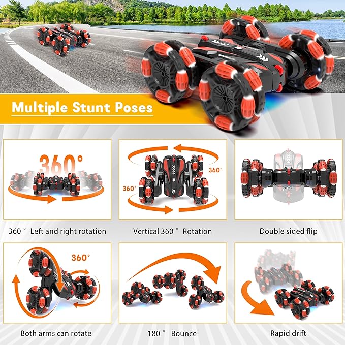 Eulogia RC Cars for Boys 5-8 Gesture Sensing Stunt Cars Double Sided 360° Flips & Rotating Remote Control Car Toys Durable Off-Road Drift Car Gifts for Boys (Red)