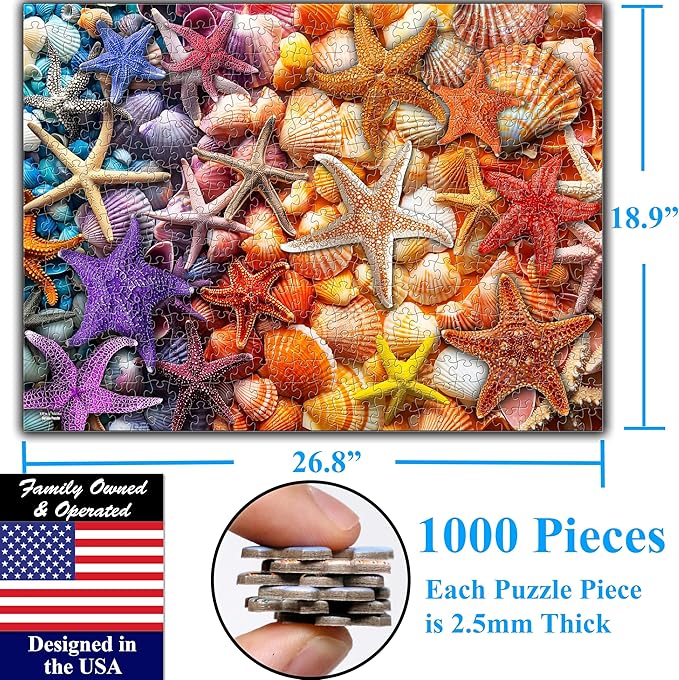 Think2Master Colorful Rainbow of Starfish & Seashells 1000 Pieces Large Format Jigsaw Puzzle for Kids 12+, Teens, Adults & Families. Beautiful Vibrant Illustration Artwork Size: 26.8” X 18.9”