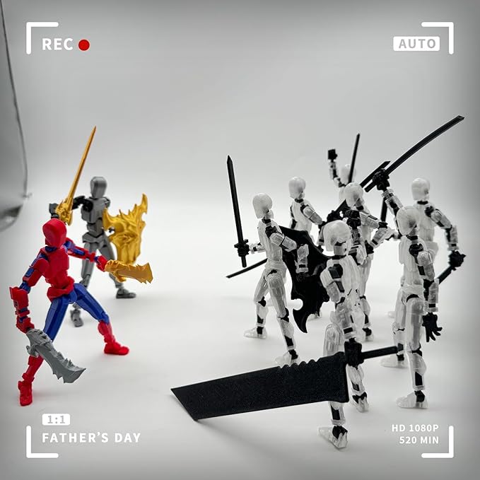3D Printed 5.54-inch Multi-Jointed Action Figures Dummy13, Full Body Mechanical Movable Toy, Multiple Accessories, Hand Painted Figure, Desk Decoration, Creative Gifts (Z-Set4)