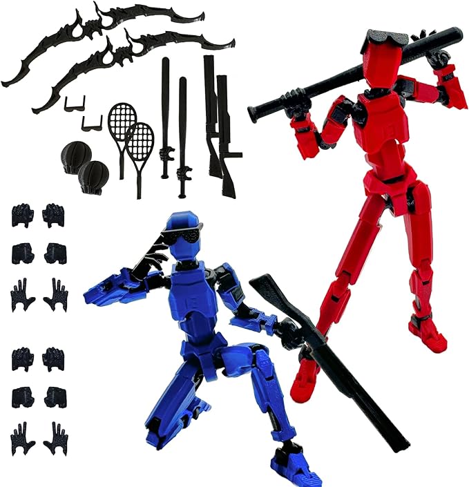 3D Printed 5.54-inch Multi-Jointed Action Figures Dummy13, Full Body Mechanical Movable Toy, Multiple Accessories, Hand Painted Figure, Desk Decoration, Creative Gifts (Sport-set1)