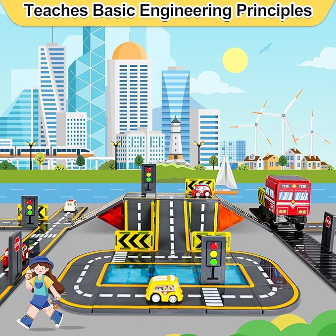 About This [Two-In-One Fun]: This magnetic road set includes 72 pieces [Road Railway Expansion Pack & 100% COMPATIBLE]: It is... Read more