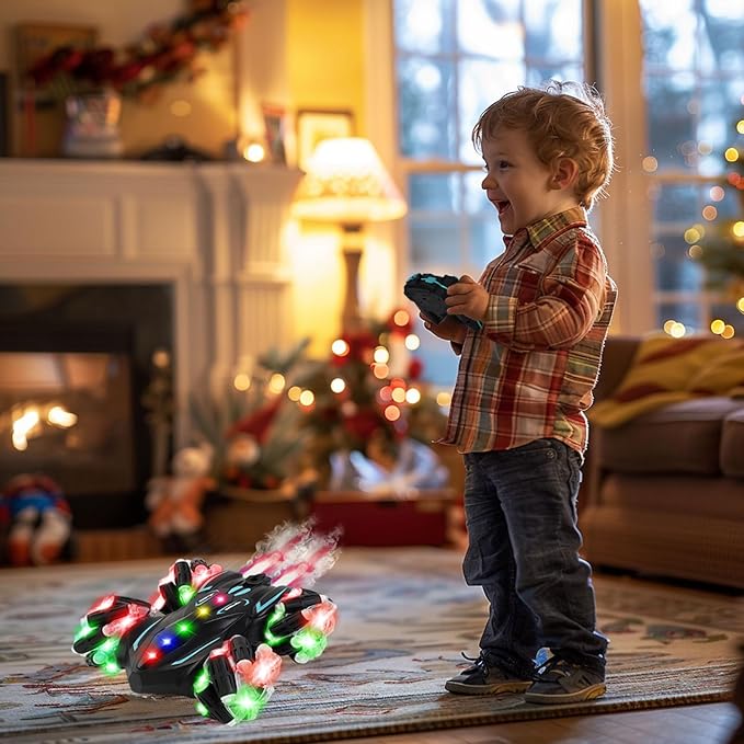 About This 【Unique Design&ABS&Structure】Gesture rc stunt car functions:forward/backward,360° extreme spins,right/left turn,One Key Demo,full-directional drifting with colored lights music and spray.With... Read more