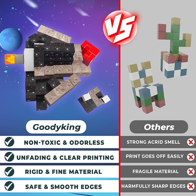 Goody King 100PCS Space Rocket Magnetic Building Blocks |Space Adventure Magnetic Tile Set, STEM Montessori Stacking Toy, Building Playsets for Boys and Girls Ages 3-10,Sensory Tile Christmas