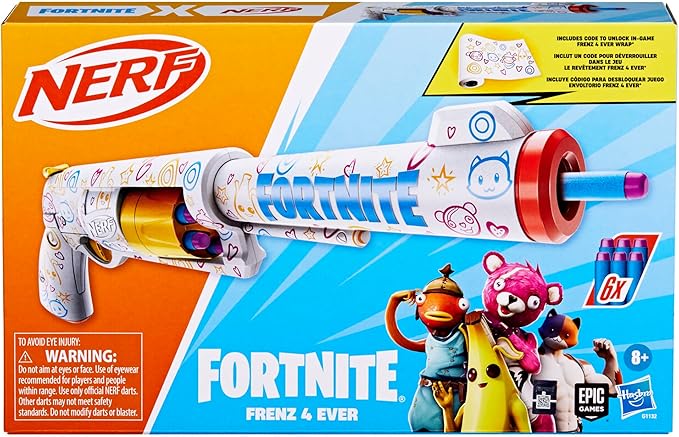 Nerf Fortnite Frenz 4 Ever Blaster, Bonus Code to Unlock Frenz 4 Ever Wrap in The Game, 6 Elite Darts, 6-Dart Drum, Fortnite Gifts