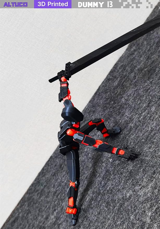 T13 Action Figure for Kids,3D Printed Titan 13 Figure with Multiple Accessories,Dummy 13 Desktop Decorative Toy(Black-red)