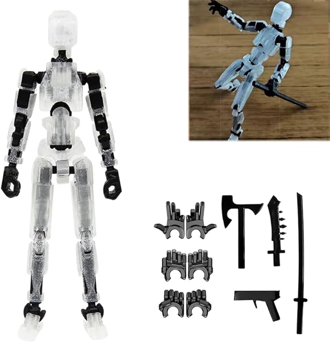 Titan13 Robot Action Figure,Lucky Robot 13 Action Figures,Creative 3D Printed Action Figure, Multi Jointed Action Figures Desktop Decorations for Kids Adult (Transparent)