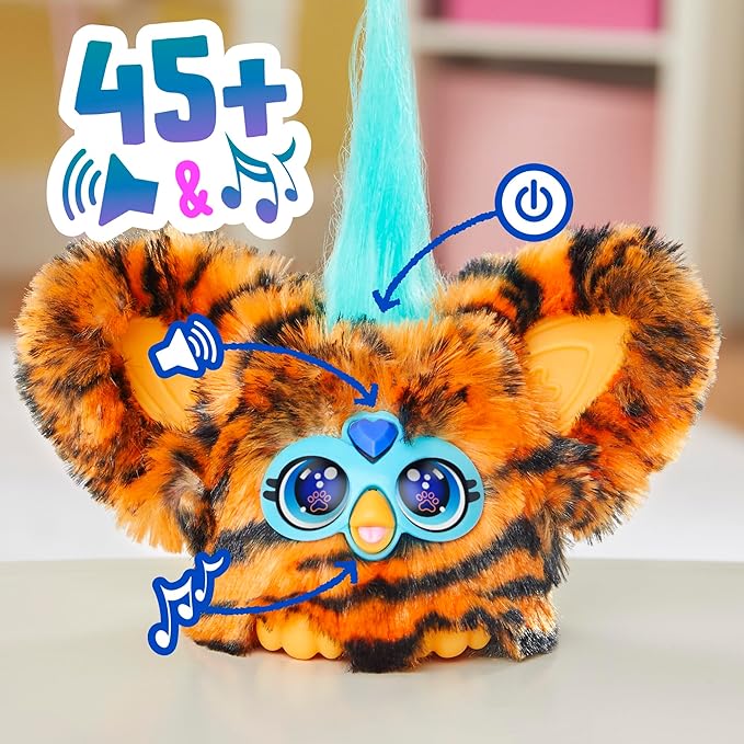 Furby Furblets Ty-Bee Mini Friend, Electronic Plush Toys for Girls & Boys, Orange Tiger, Speaks Furbish & Plays Music, Series 5, Back to School Gifts, Ages 6+