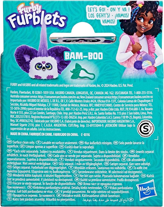 Furby Furblets Bam-Boo Mini Friend, Electronic Plush Toys for Girls & Boys, Panda, Black & White, Speaks Furbish & Plays Music, Series 5, Back to School Gifts, Ages 6+
