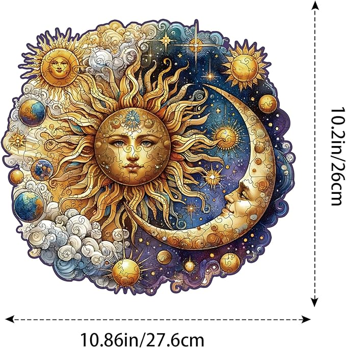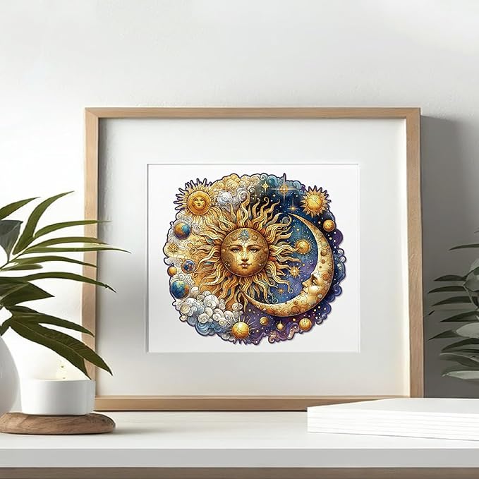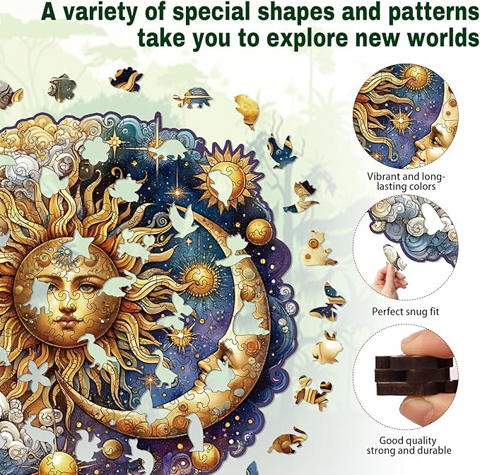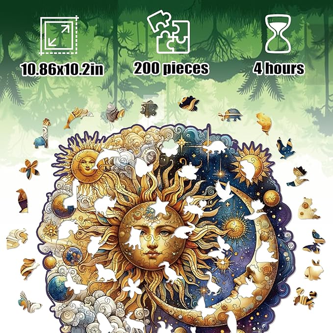 Wooden Puzzles for Adults, Sun and Moon Wood Puzzles 200 Pieces, Irregular Animal Shaped Unique Wooden Jigsaw Puzzles, Creative Ghristmas Gift for Teenagers and Adults
