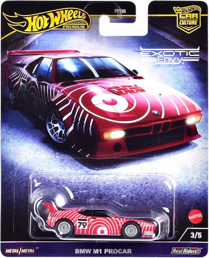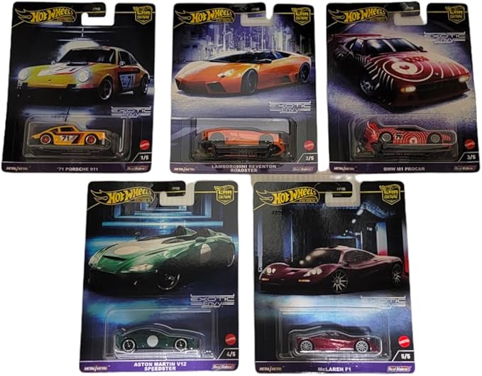 Hot Wheels Car Culture 2024 Exotic Envy Complete 5‑Pack | ‘71 Porsche 911, Lamborghini Reventón, BMW M1 Procar, Aston Martin V12 Speedster & McLaren F1 | (FPY86-959G) Die-Cast Vehicles – Ages 3+