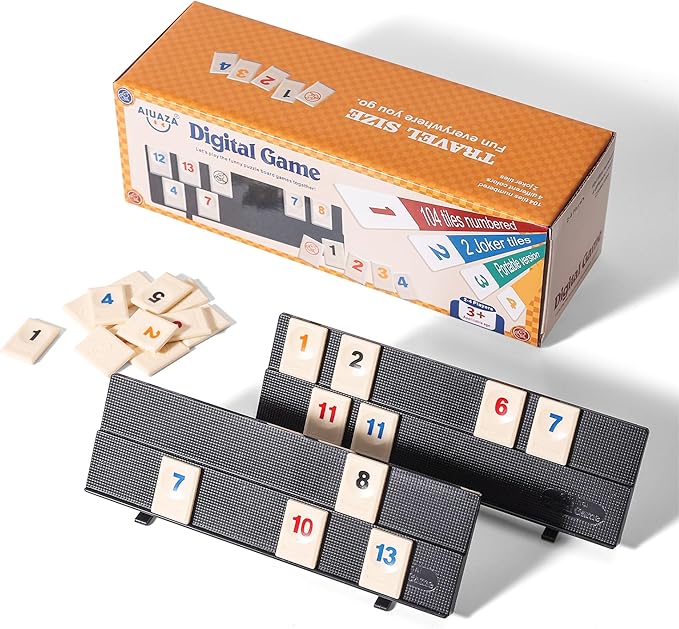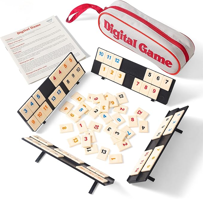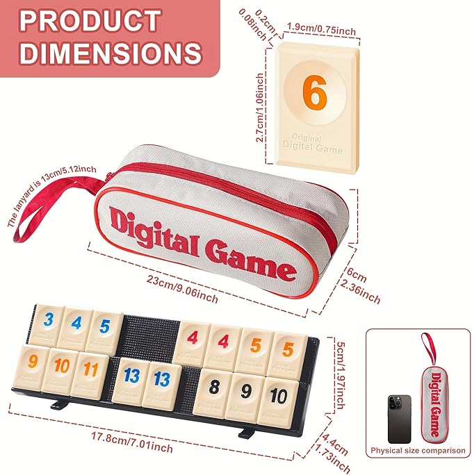 Rummy Cube Game with Portable Bag, Mini Rummy Cube Game for Adult and Kids,106 Tiles, Playing Rack,Travel Set with 4 Tiles Holders for Family Classic Board Games (Travel Edition 2-4 Players)