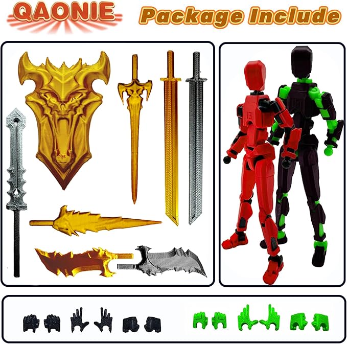 3D Printed 5.54-inch Multi-Jointed Action Figures Dummy13, Full Body Mechanical Movable Toy, Multiple Accessories, Hand Painted Figure, Desk Decoration, Creative Gifts (Z-Set2)