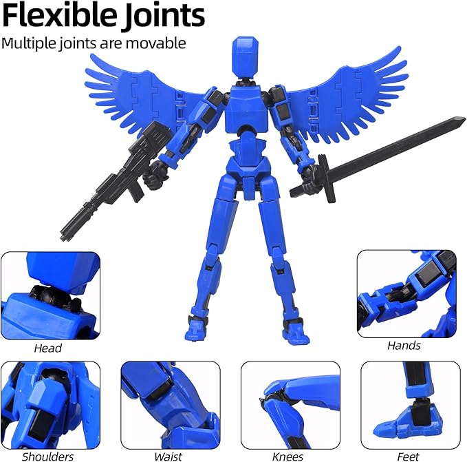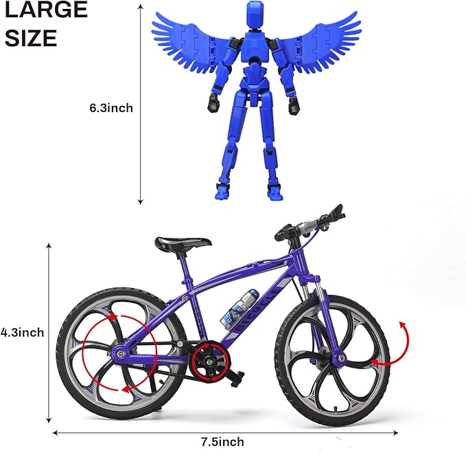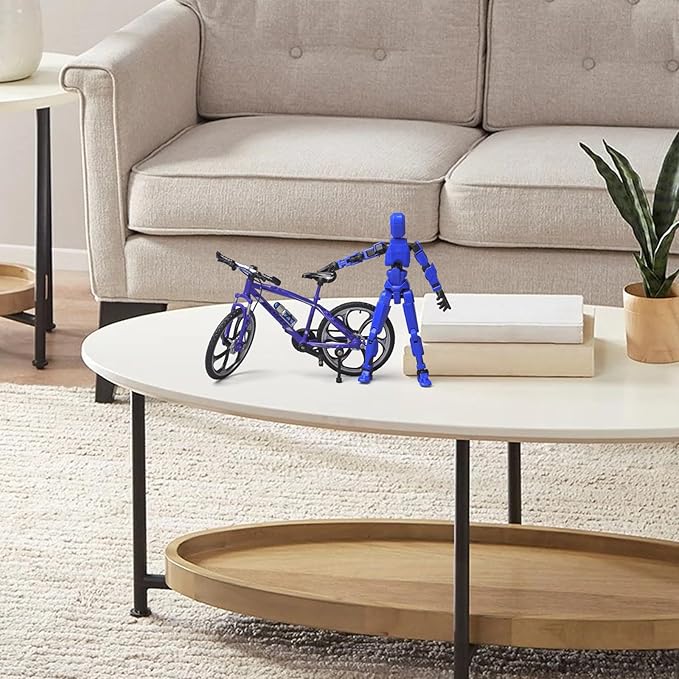 (Assembly Completed) T13 Action Figures, 6.3 Inch Big Dummy 13 Mountain Die-cast Mini Bike Model with Multi-Jointed Movable Lucky 13 Robot Toys Set(Blue)