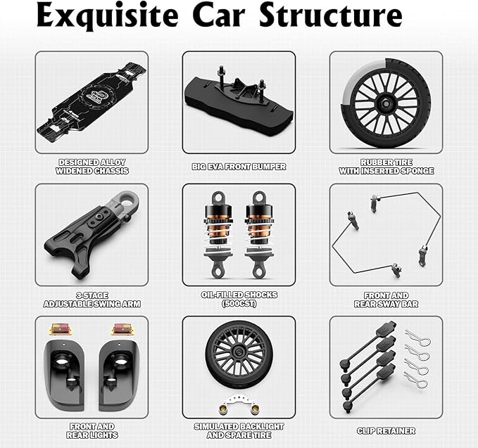 1:10 Brushless RC Car Alloy Roller for Adults, 4WD Hobby On-Road Race Car Roller with 1/8 Differential and Aluminum Shock Absorbers