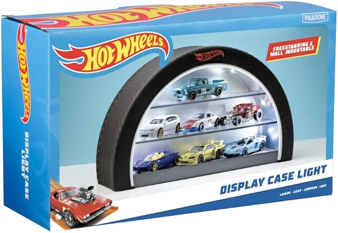 Hot Wheels Display Case Light - Officially Licensed Mattel Merchandise, Light Up Case Holds 8 Cars, Wheel Shaped Wall Mountable or Freestanding, Gift for Collectors