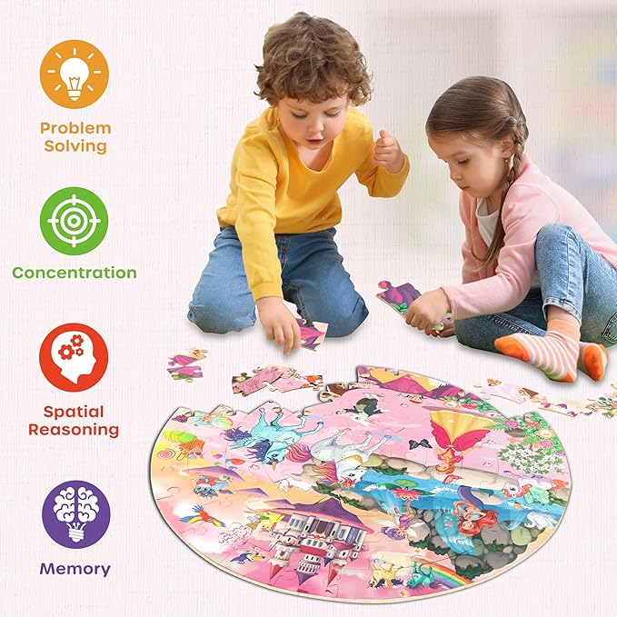 About This Beautiful floor puzzle: This is a 70-piece circular puzzle with a diameter of 22.8 inches (58 cm), including... Read more