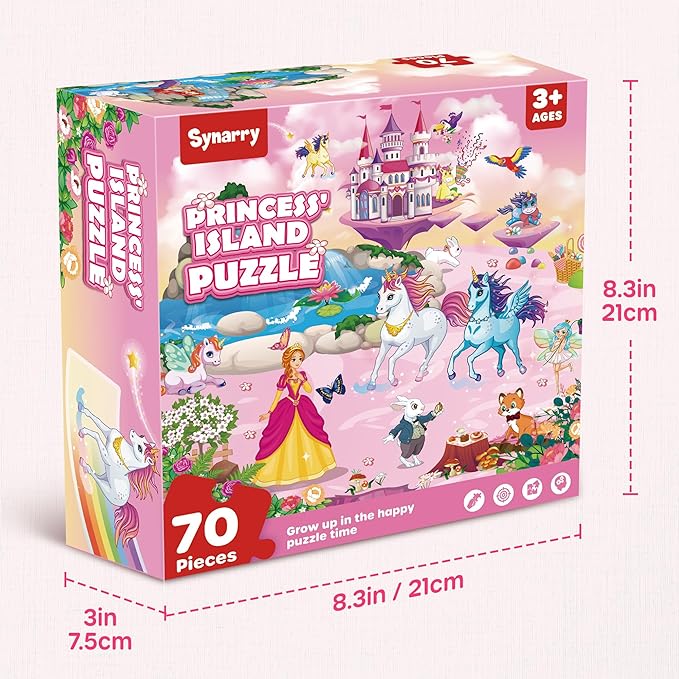 SYNARRY Unicorn Princess Mermaid Fairy Floor Puzzle for Kids Ages 3-5, Large 70 Piece Wooden Puzzle for Kids Ages 4-6, Preschool Toys Gifts for 3 4 5 6 7 8 Years Old Boys Girls Children