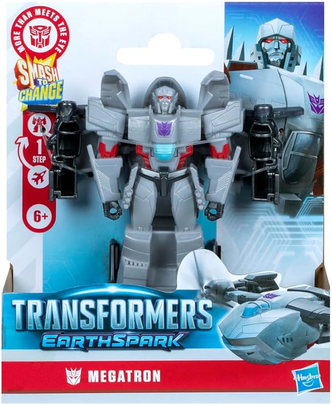 Transformers EarthSpark 1-Step Smash Changers Megatron 4-Inch Action Figure, Robot Toys for Boys and Girls 6 and Up