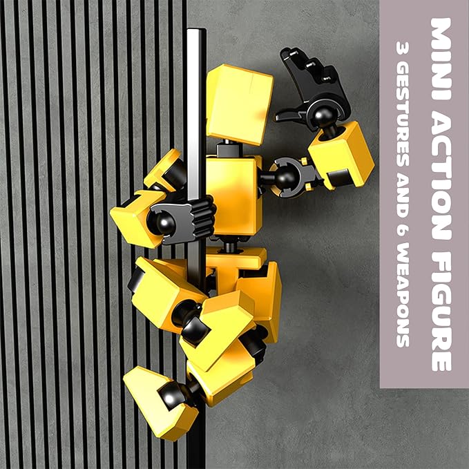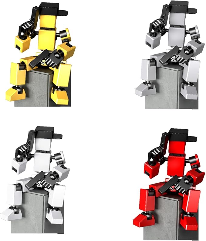 4-Pack Mini Action Figures Set - Assembled Robot Anime Figures with Movable Joints - Fidget Toys for Boys and Girls (White, Red, Grey, Yellow)