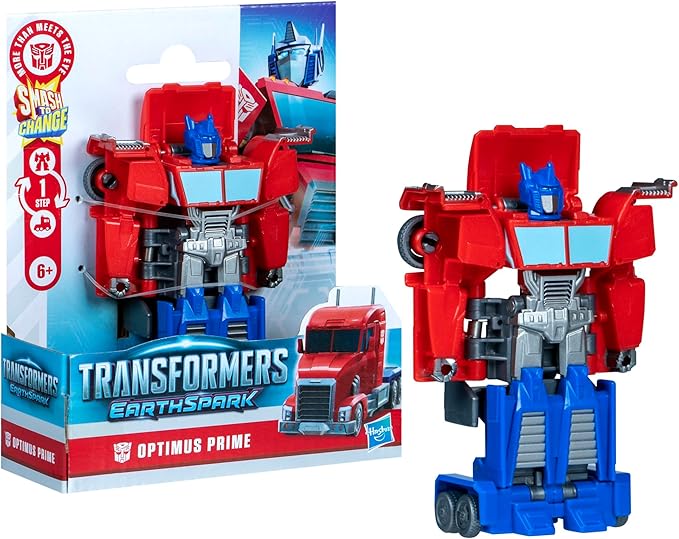Transformers EarthSpark 1-Step Smash Changers Optimus Prime 4-Inch Action Figure, Robot Toys for Boys and Girls 6 and Up