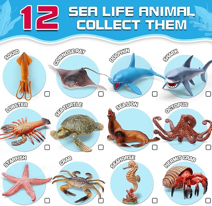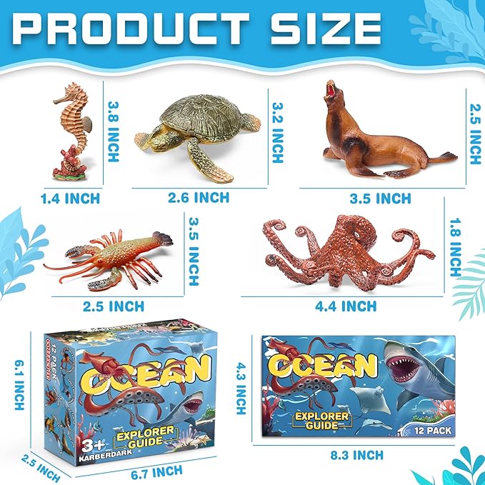 About This Sea Animal Playsets:Comes with a booklet, including 12 animals figurines that can be stored in a gift box:... Read more