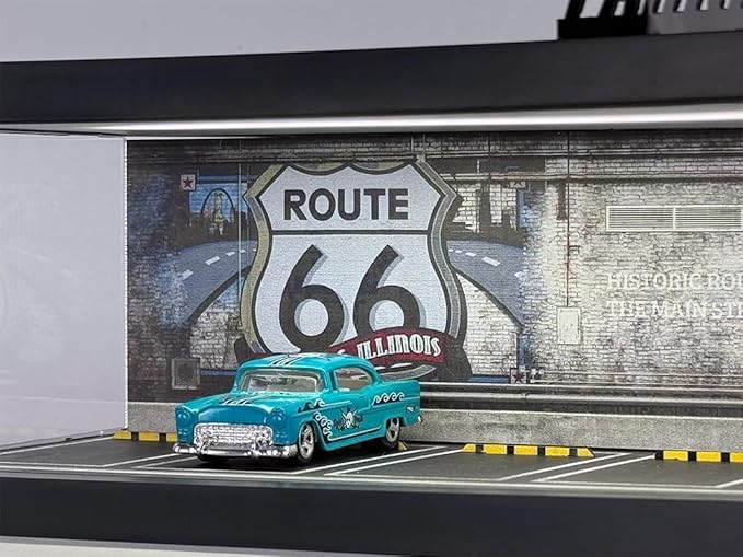 1/64 Model Car Display Case - Compatible with Hot Wheels Matchbox Mini GT Diecast Cars,Acrylic Box for Toy Cars Display Décor and Storage,Stackable Garage Diorama with LED Lights(1T-Rou66)