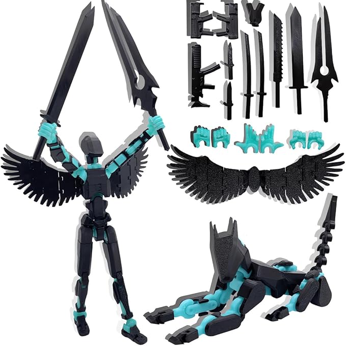 T13 Action Figures Set (Assembly Completed) Dummy 13 Titan 13 Robot Action Figure 3D Printed Robo Multi-Jointed Movable Action Figure Toy with Full Articulation (Black Blue Figure + Dog)