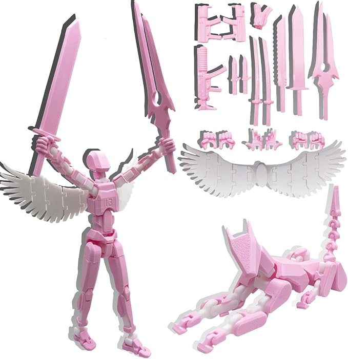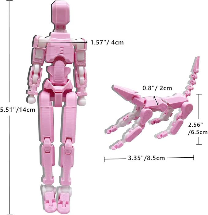 T13 Action Figures Set (Assembly Completed) Dummy 13 Titan 13 Robot Action Figure 3D Printed Robo Multi-Jointed Movable Action Figure Toy with Full Articulation (T 13 Pink White Figure + Dog)