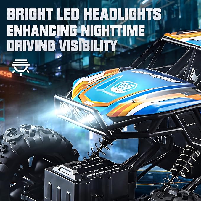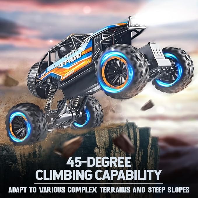 BEZGAR Monster Truck Toys - Remote Control Monster Truck with Light, RC Crawler for Adults, 1:12 Scale RC Truck with 45° Climbing, Remote Control Car for Boys