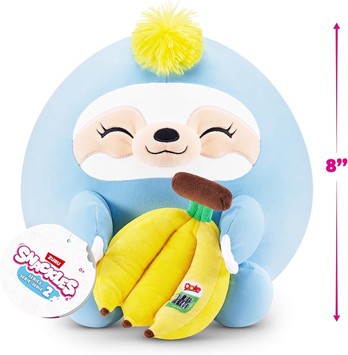 Snackles Series 2 8-inch by ZURU Cuddly Squishy Comfort 8-inch Plush with Licensed Snack Brand Accessory (Sloth&Dole Banana)