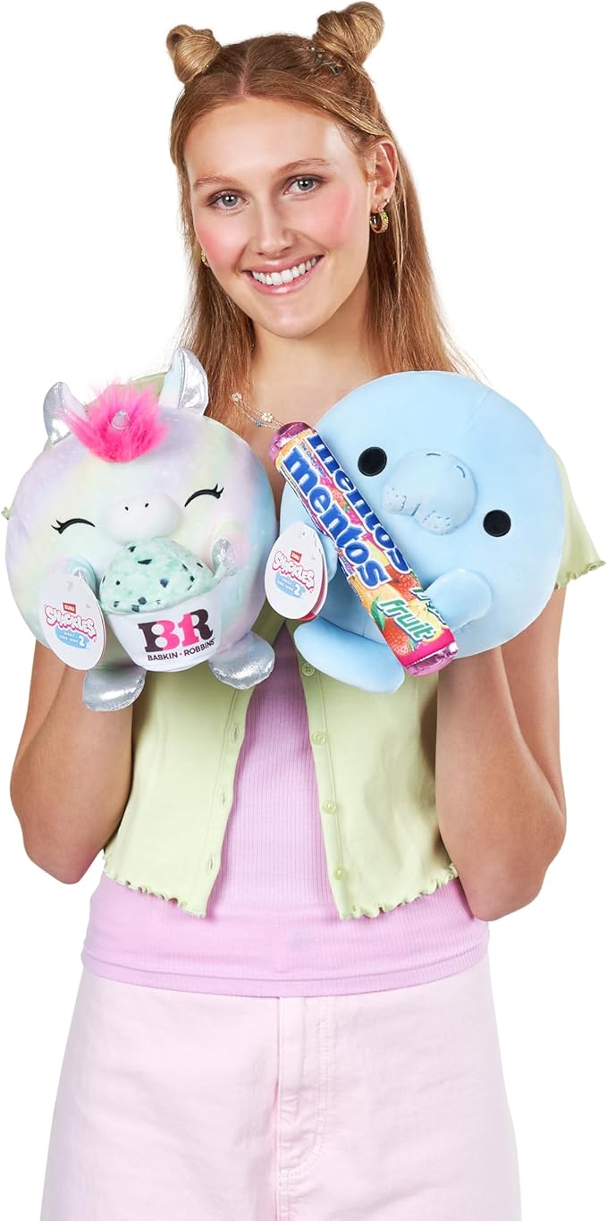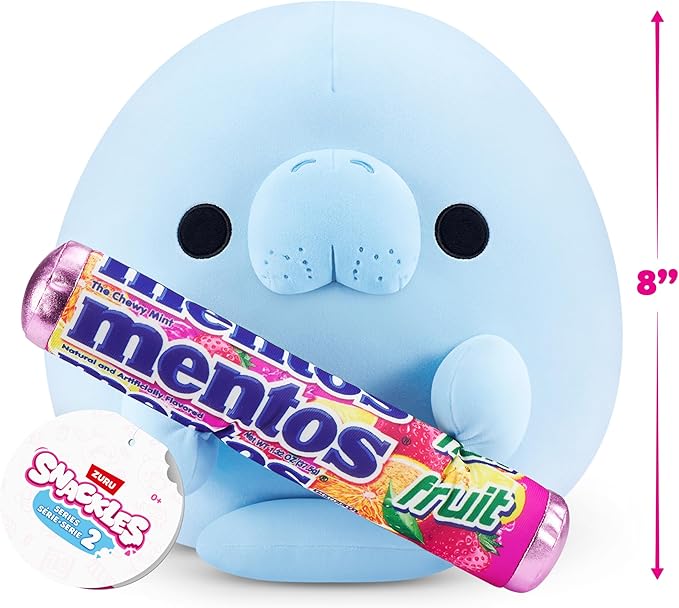 Snackles Series 2 8-inch by ZURU Cuddly Squishy Comfort 8-inch Plush with Licensed Snack Brand Accessory (Sea Cow&Mentos Fruit)